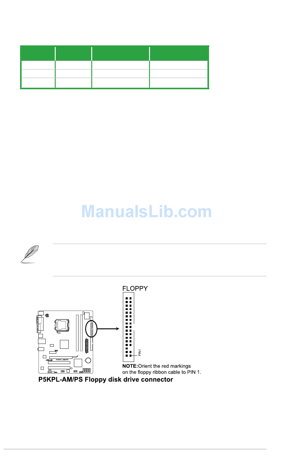 • The floppy disk drive cable is purchased separately.