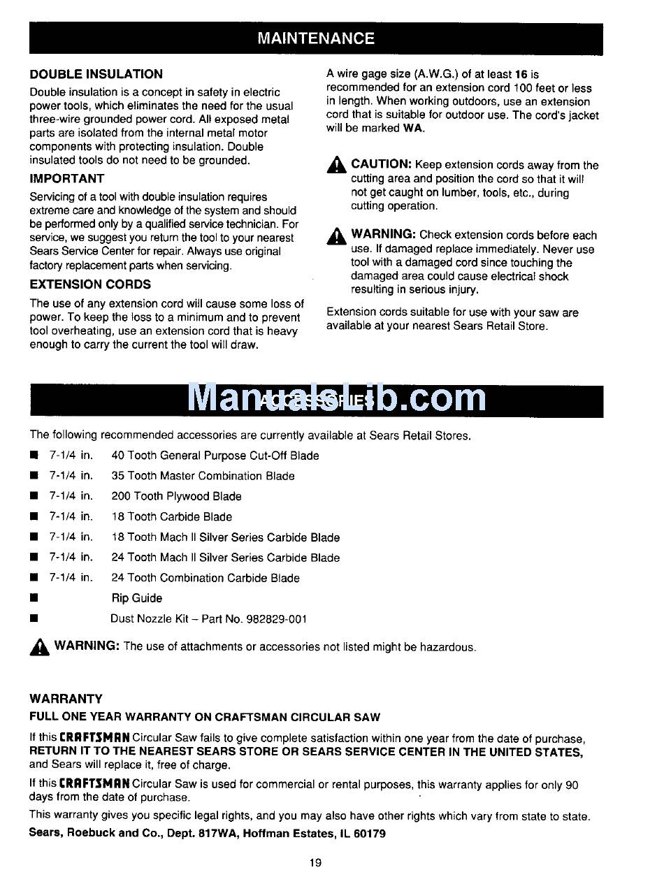 If this I"RI_ICl'$MAN Circular Saw fails to give complete satisfaction within one year from the date of purchase,