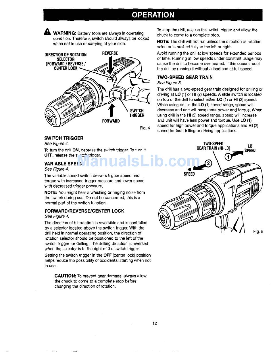 on top of the drill to select eitherLO (1) or HI (2) speed.