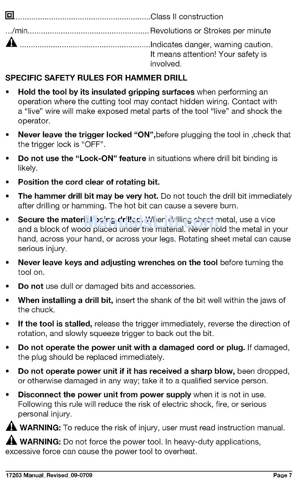 SPECIFIC SAFETY RULES FOR HAMMER DRILL