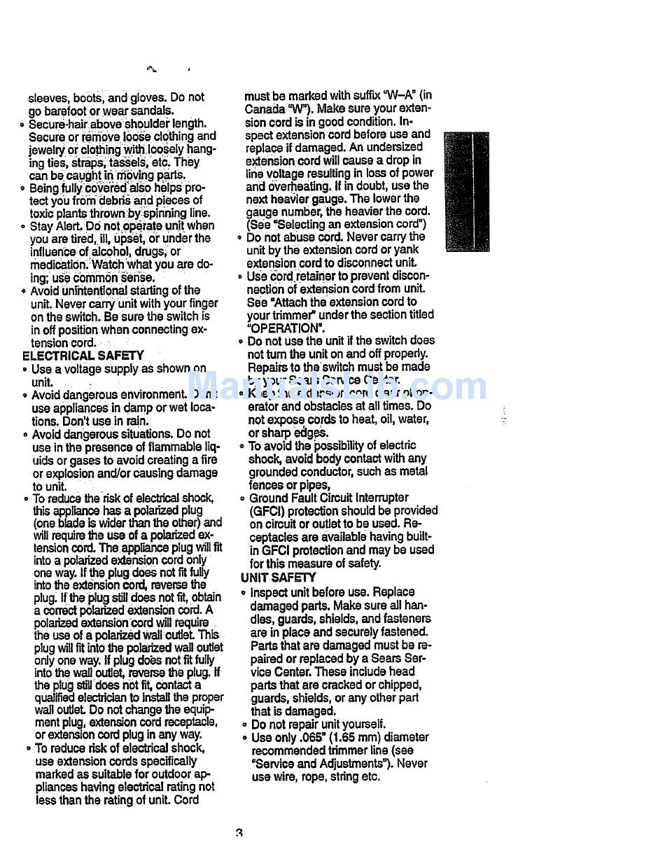 nection of extension cord from unit.