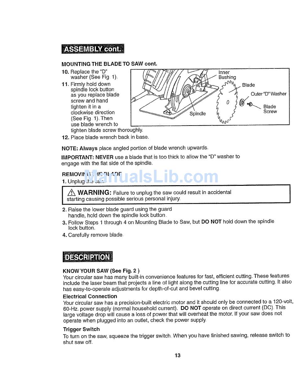 MOUNTING THE BLADE TO SAW cont.