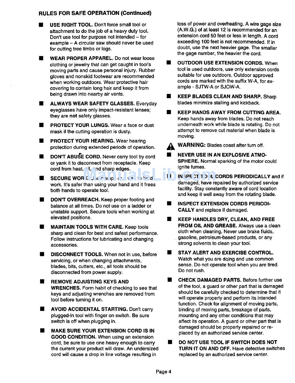 RULES FOR SAFE OPERATION (Continued)