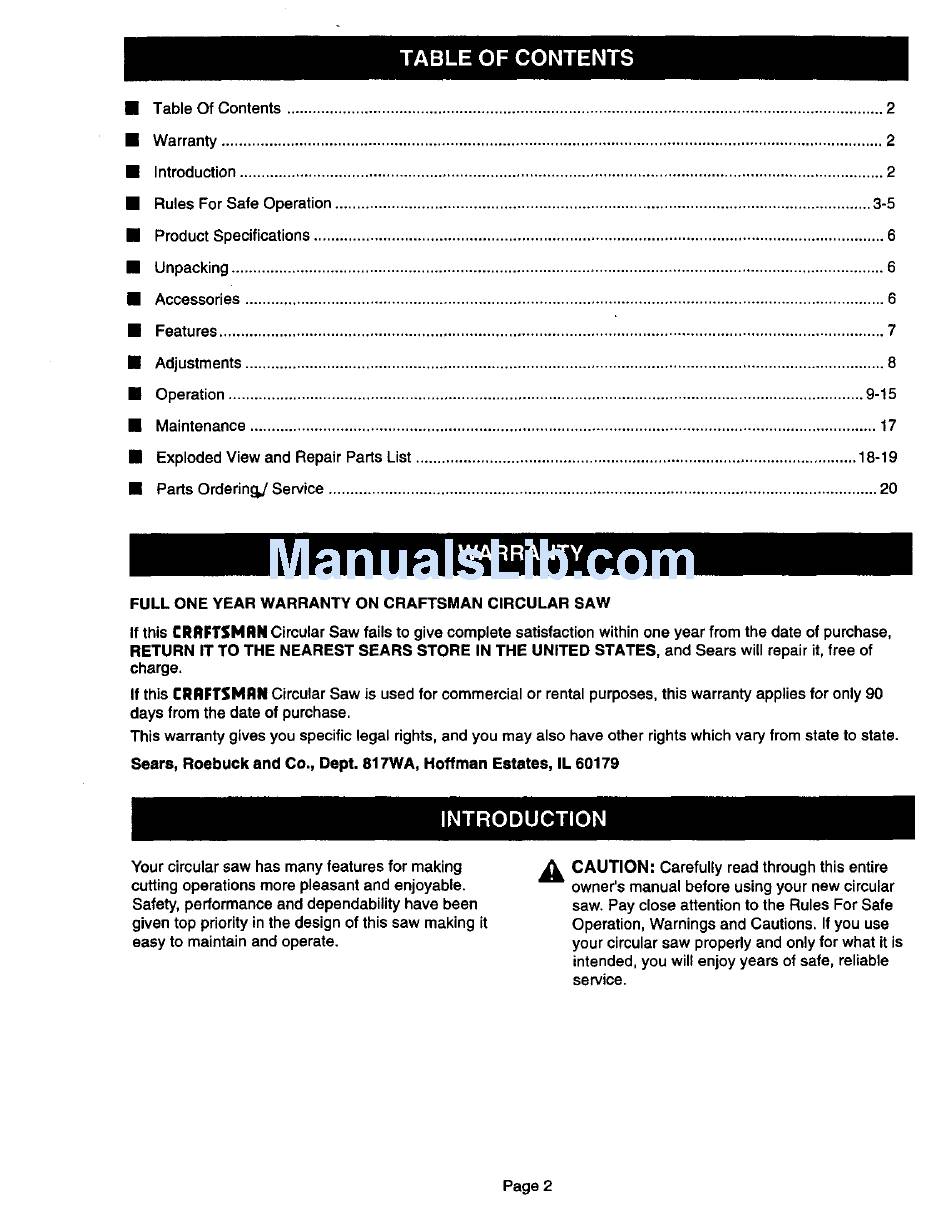 If this I::RflI:TSMIIN Circular Saw fails to give complete satisfaction within one year from the date of purchase,