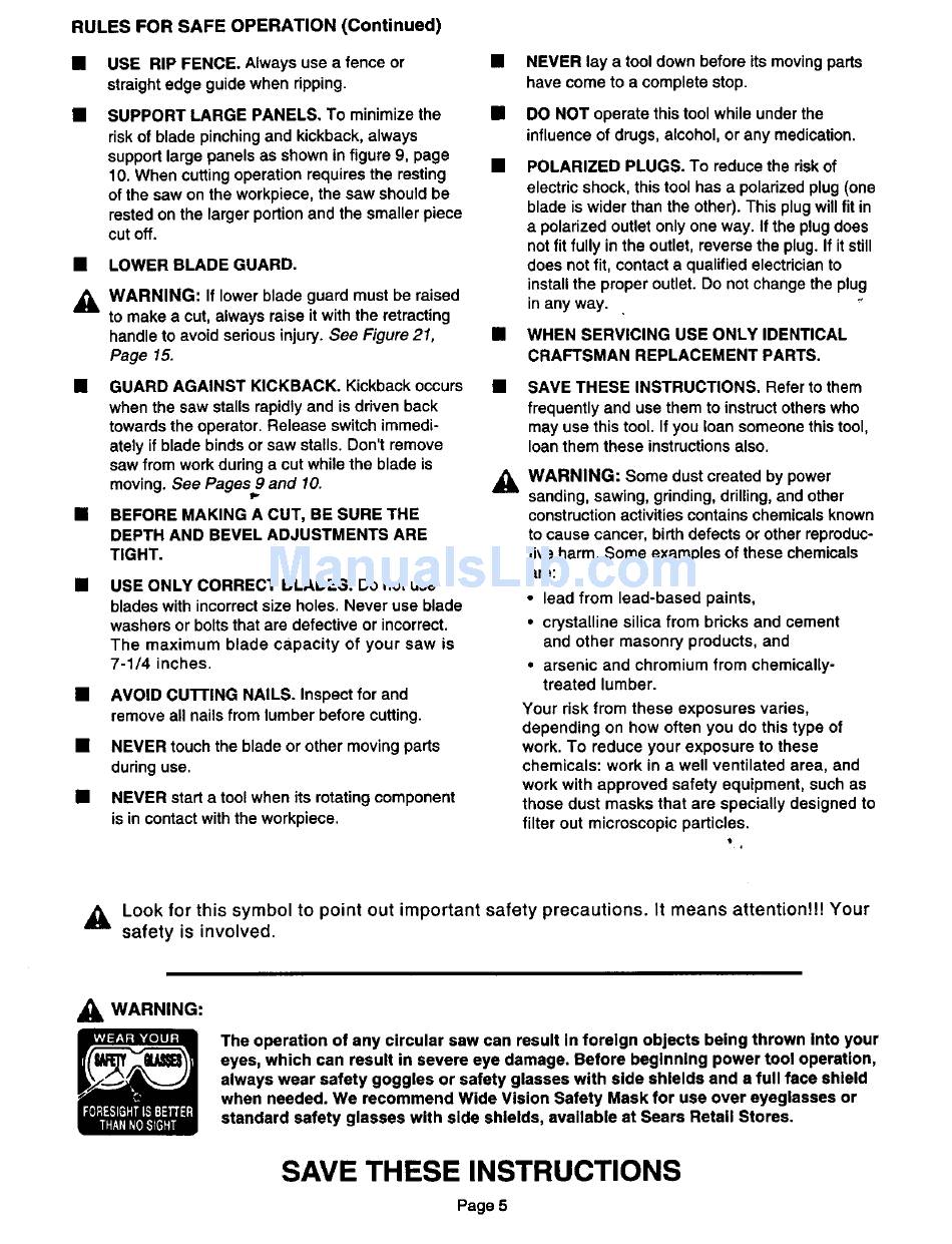 The operation of any circular saw can result in foreign objects being thrown Into your