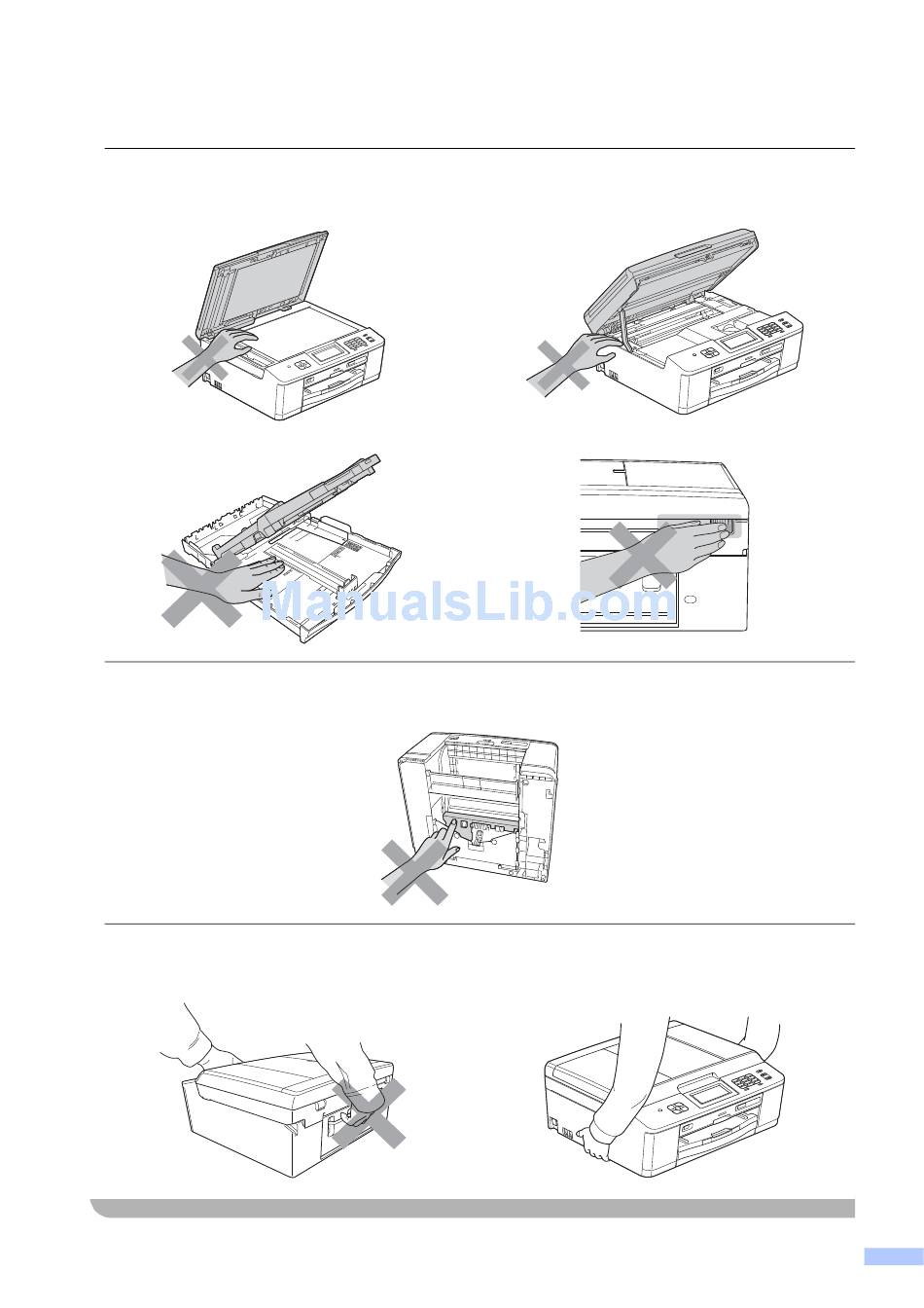 NO traslade el equipo sujetándolo por la cubierta del escáner ni por la cubierta para el desatasco de papel. Si lo