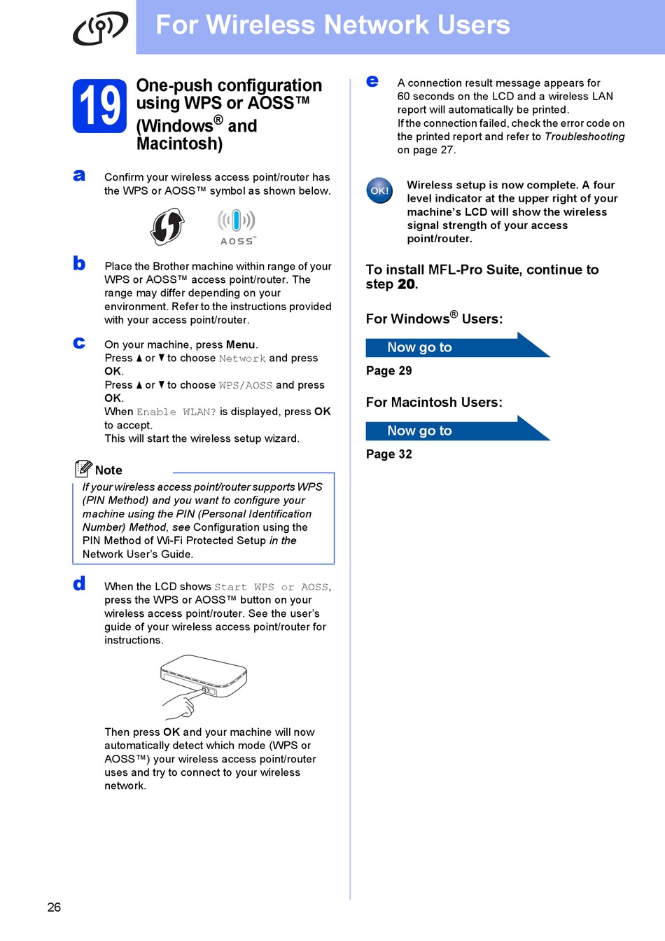 Press a or b to choose WPS/AOSS and press