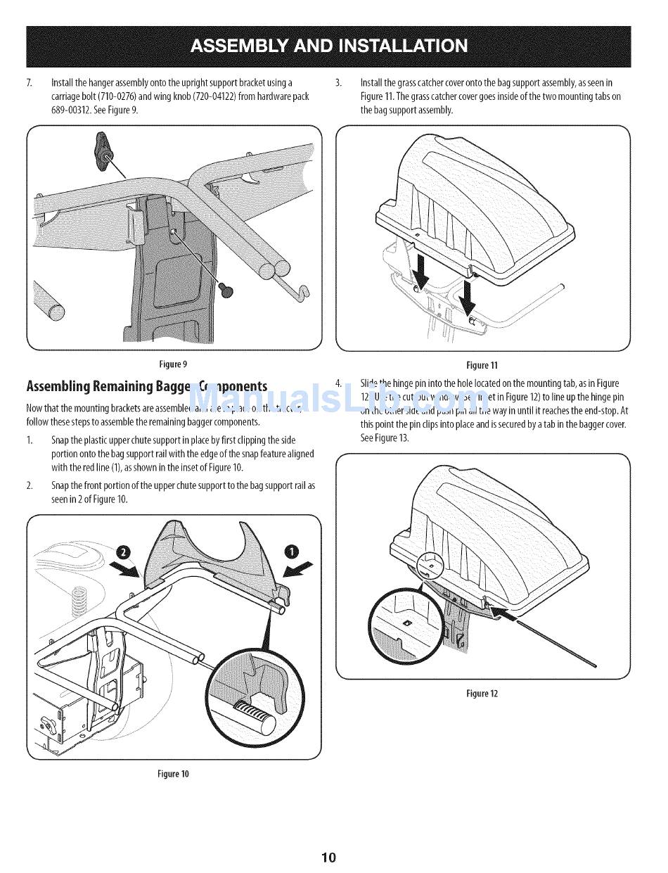 Installthe grass catchercoverontothe bagsupportassembly, asseenin