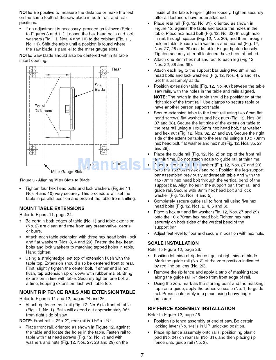 Attach rip fence front rail (Fig. 12, No. 6) to front of table