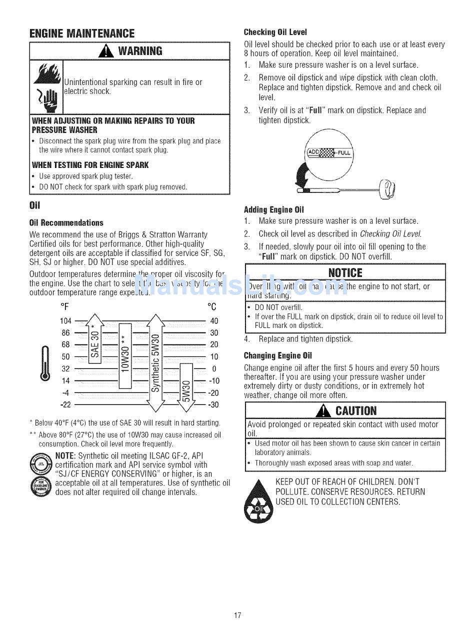 * Below40°F(4°0) the useof SAE30 will resultin hardstarting.