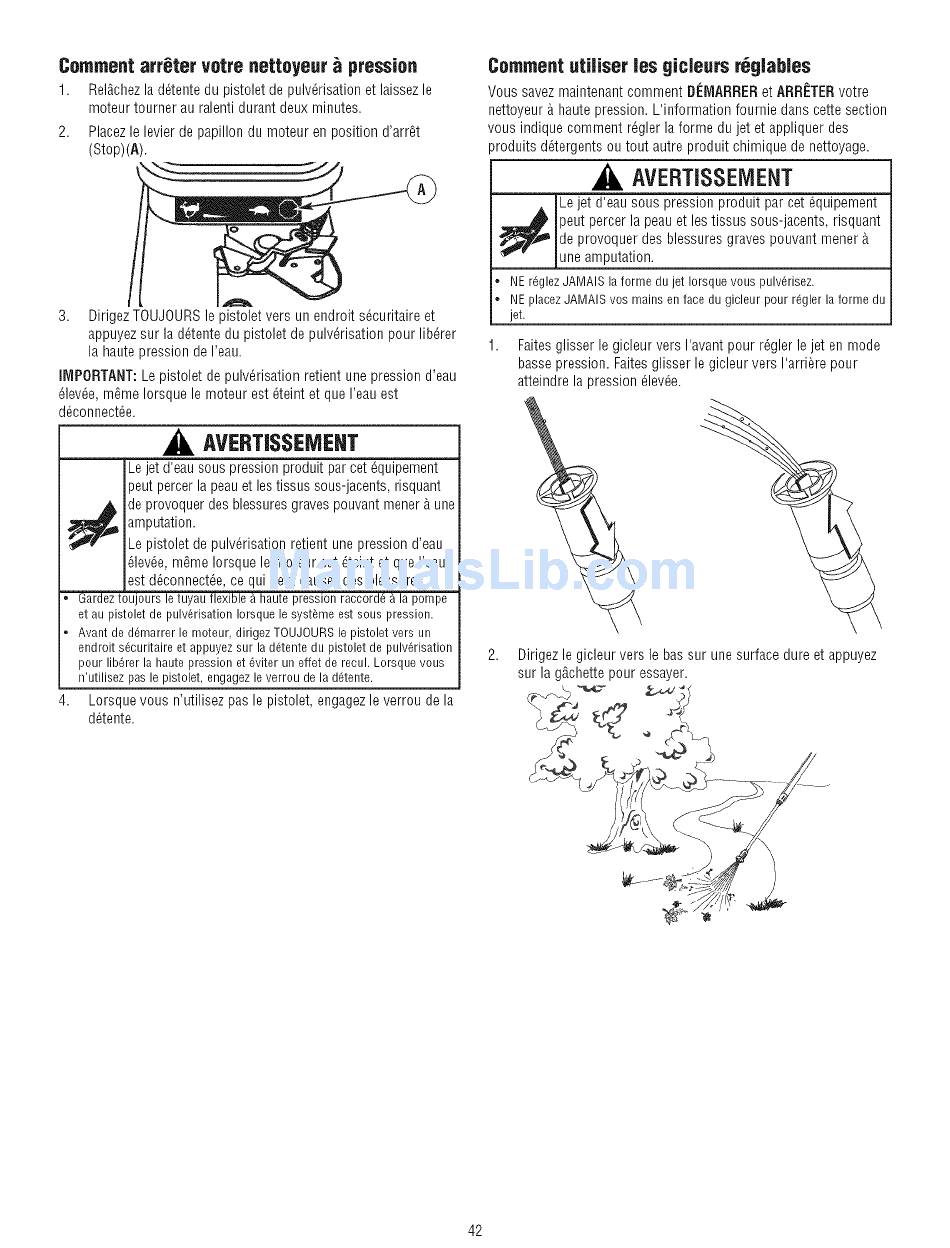 appuyezsur la d6tente du pistolet de pulv6risation pour lib6rer