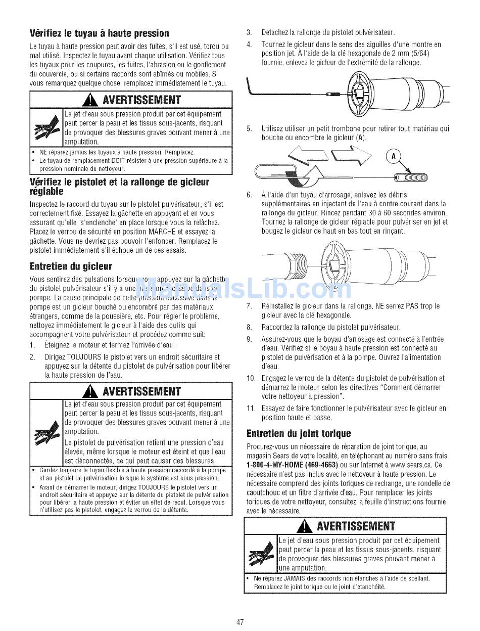 toriques de votre nettoyeur, consultez la feuille d'instructions fournie