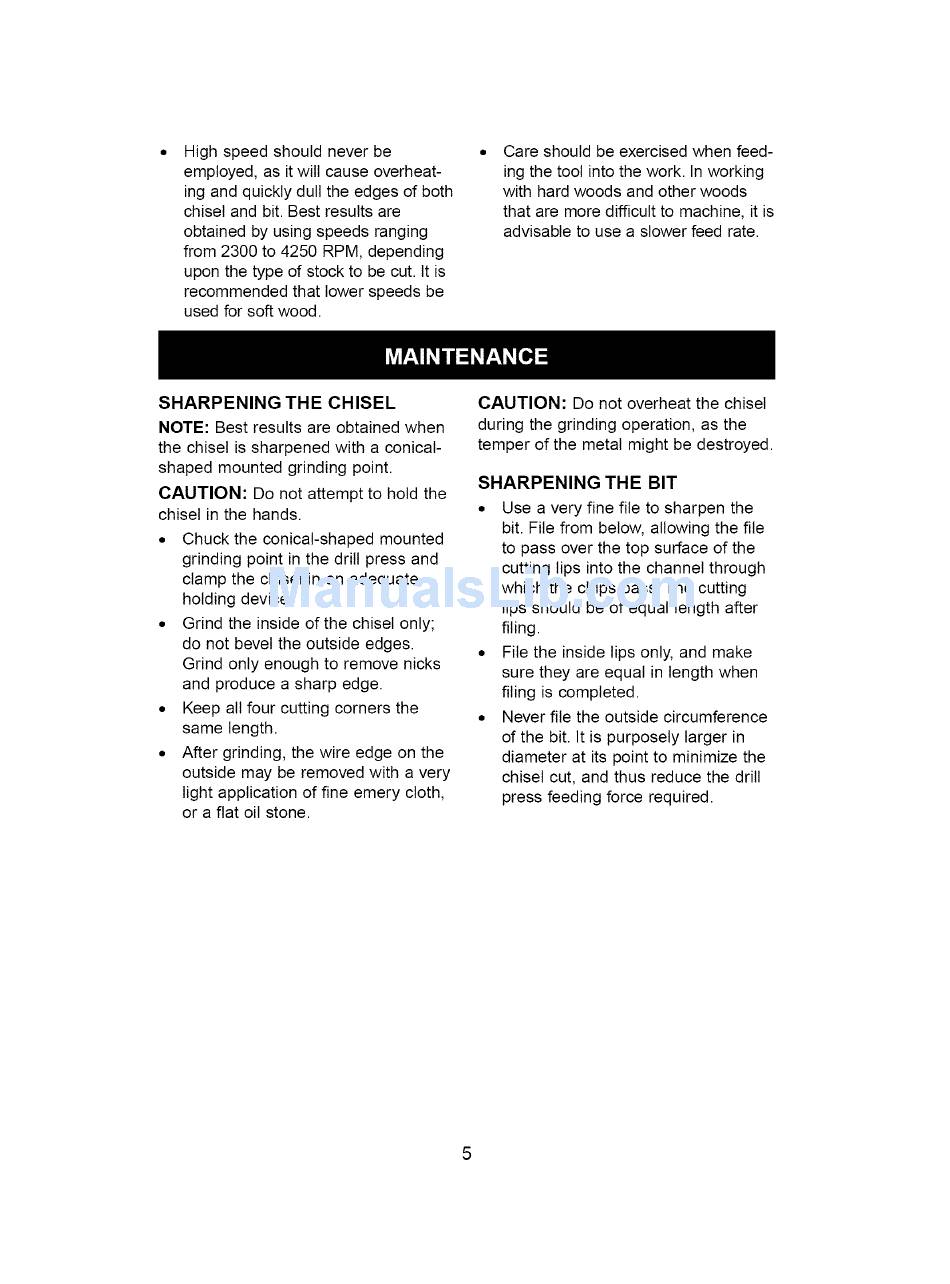 chisel cut, a ndthus reduce t hedrill
