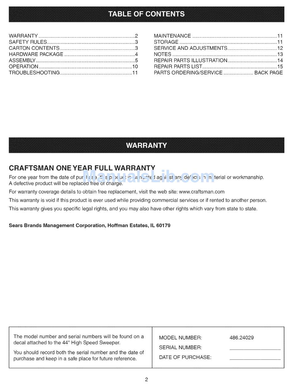 For warranty coverage details to obtain free replacement, visit the web site: www.craftsman.com