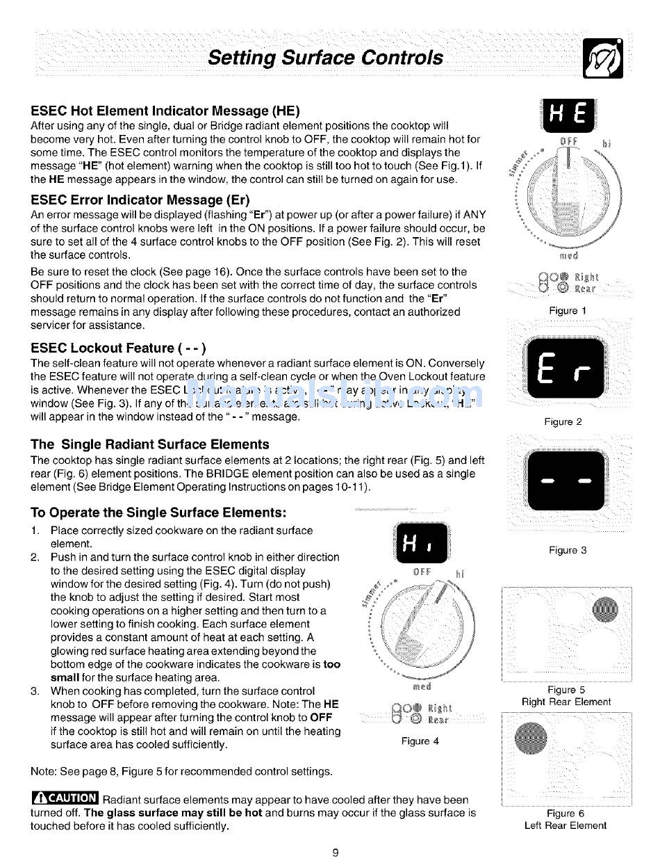 message "HE" (hot element) warning when the cooktop is still too hot to touch (See Fig. 1). If
