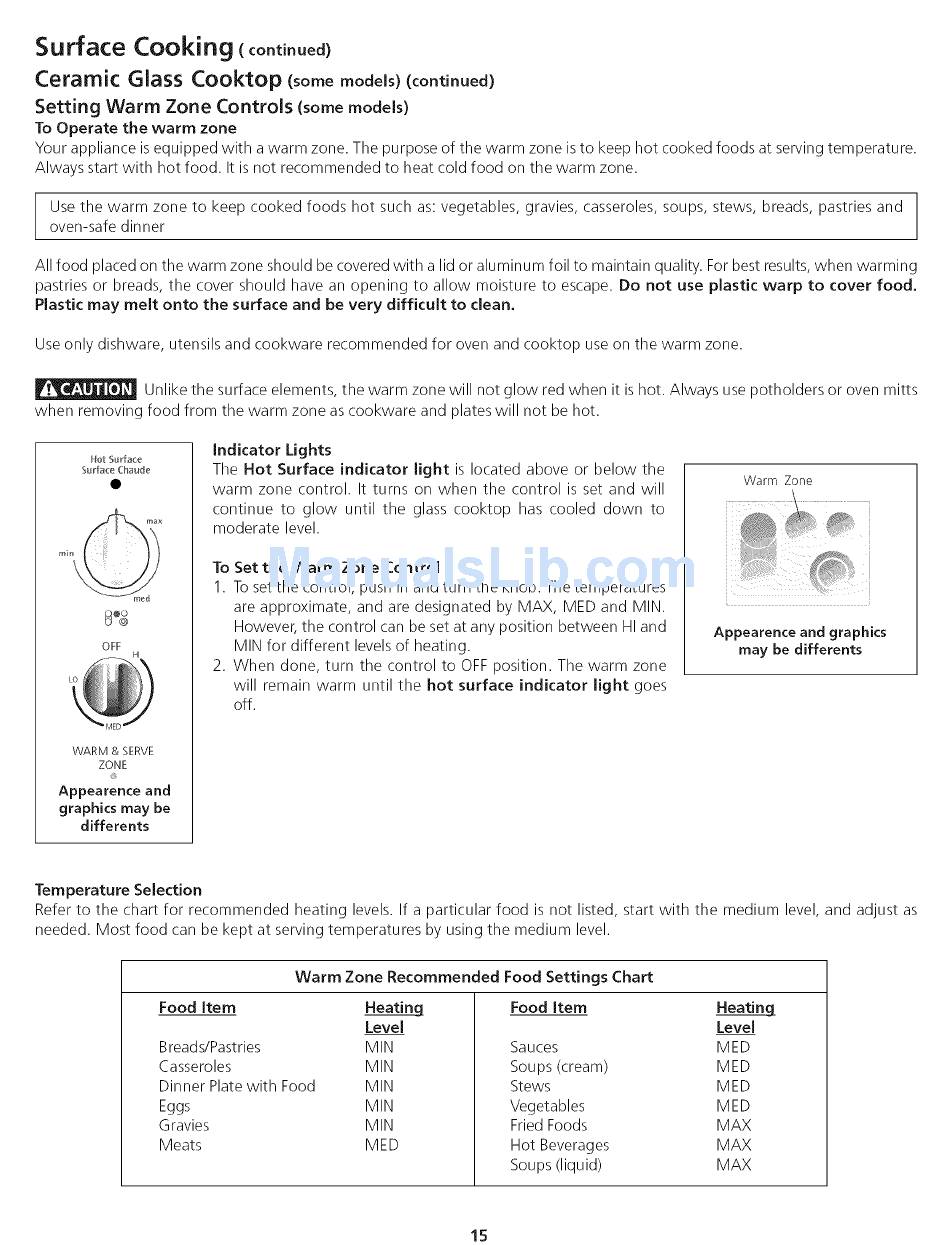 Your appliance is equipped with a warm zone. The purpose of the warm zone is to keep hot cooked foods at serving temperature.