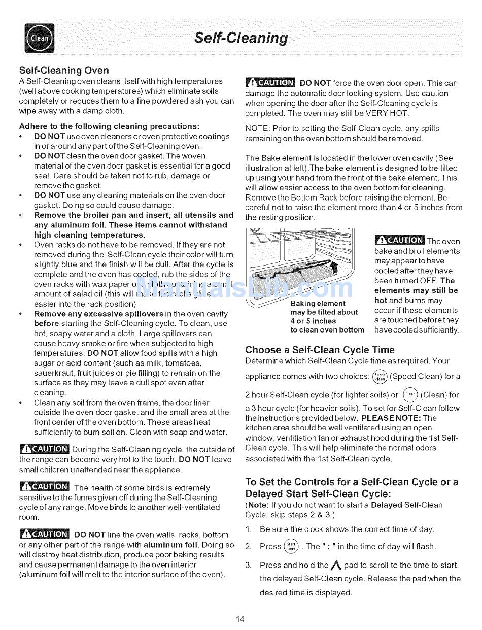 NOTE: Prior to setting the Self-Clean cycle, any spills