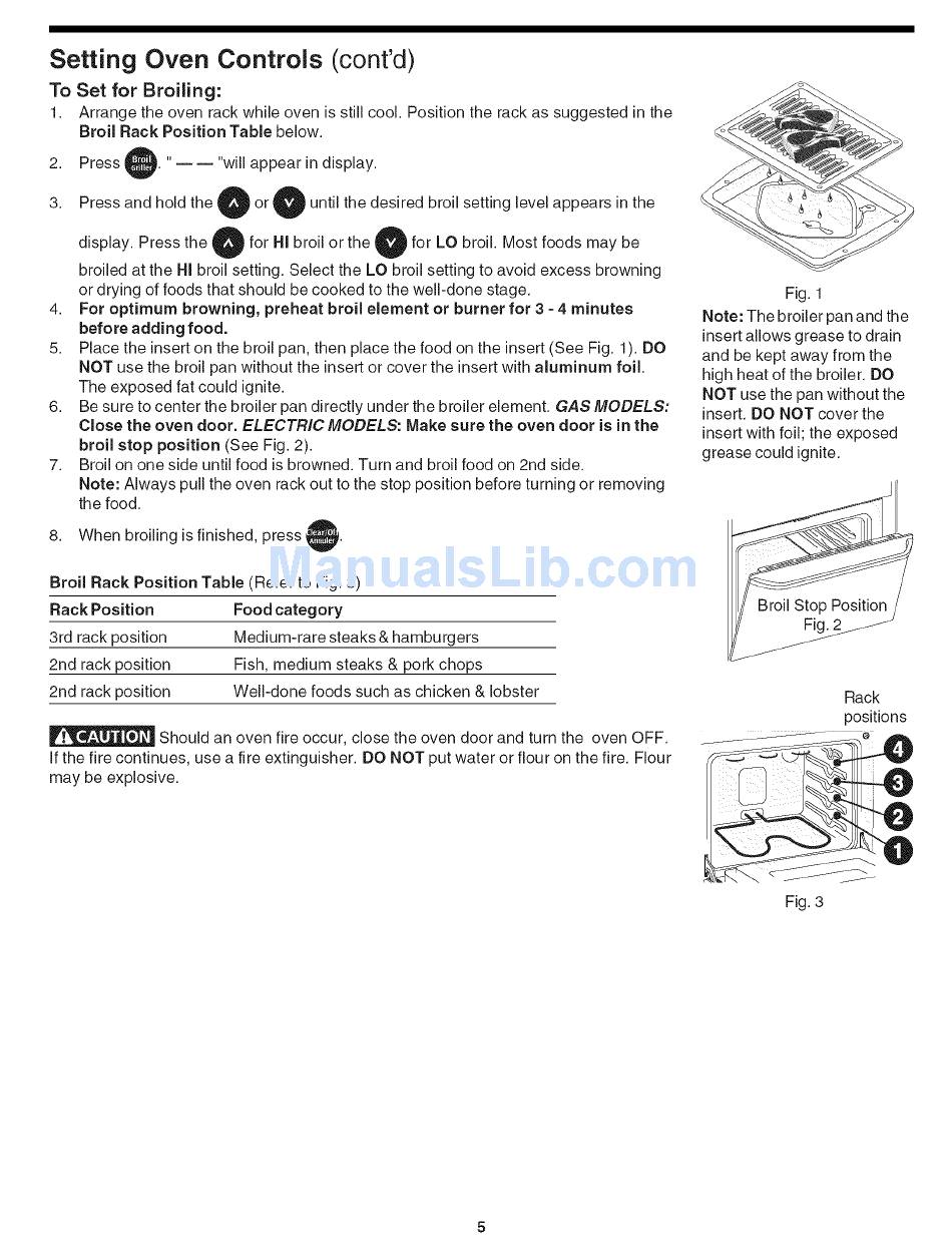 Broil Rack Position Table below.