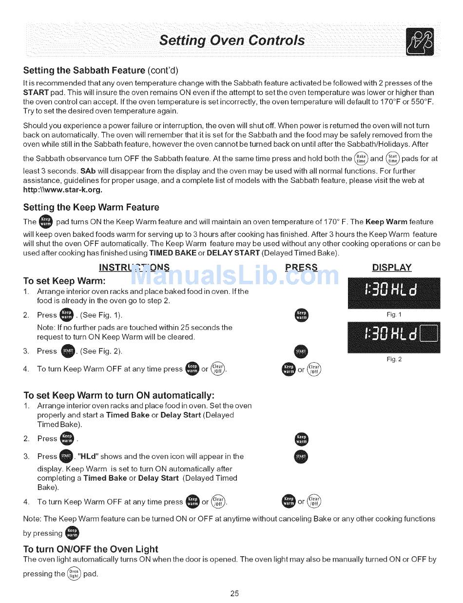 pad turns ON the Keep Warm feature and will maintain an oven temperature of 170 ° F. The Keep Warm feature