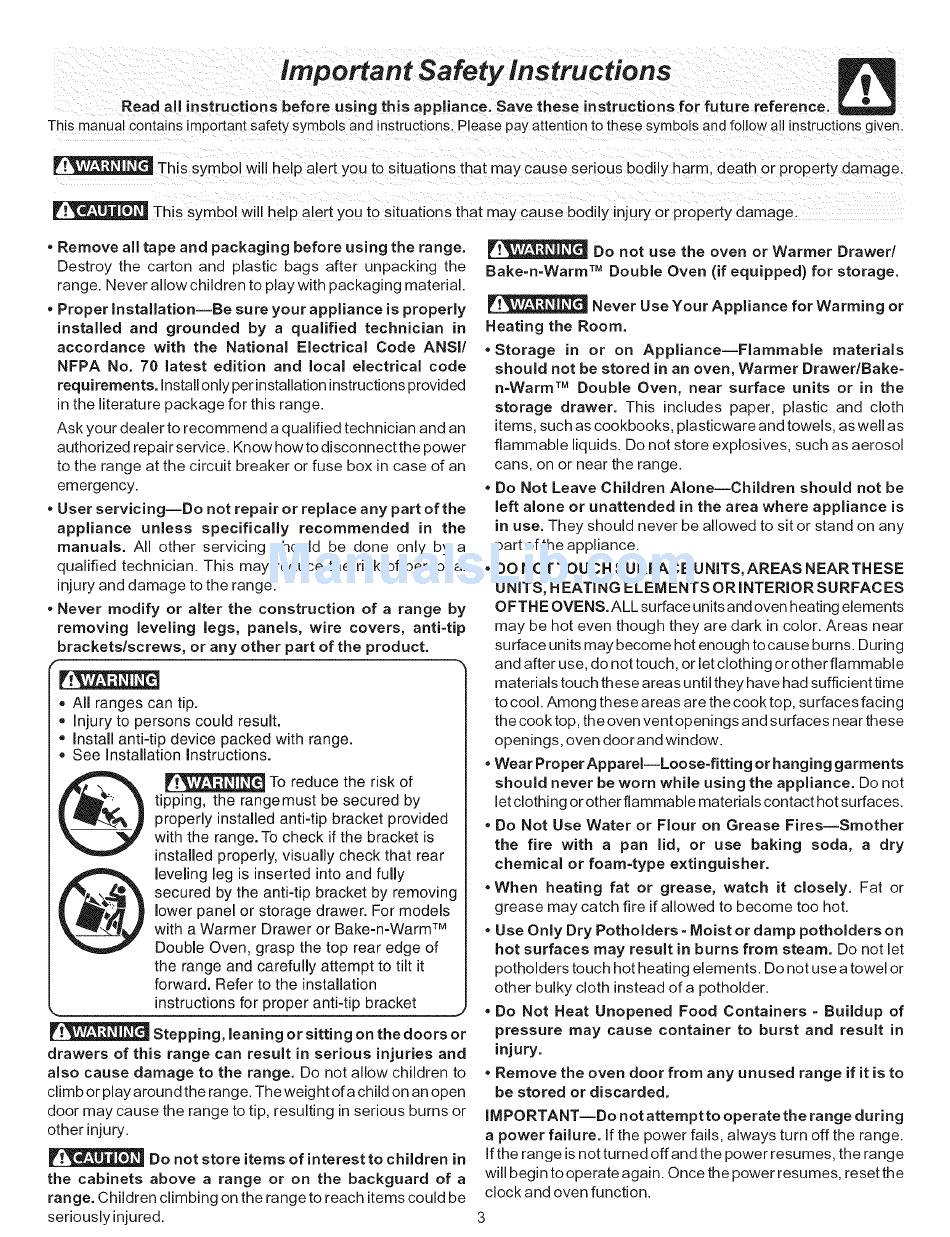 tipping, the rangemust be secured by