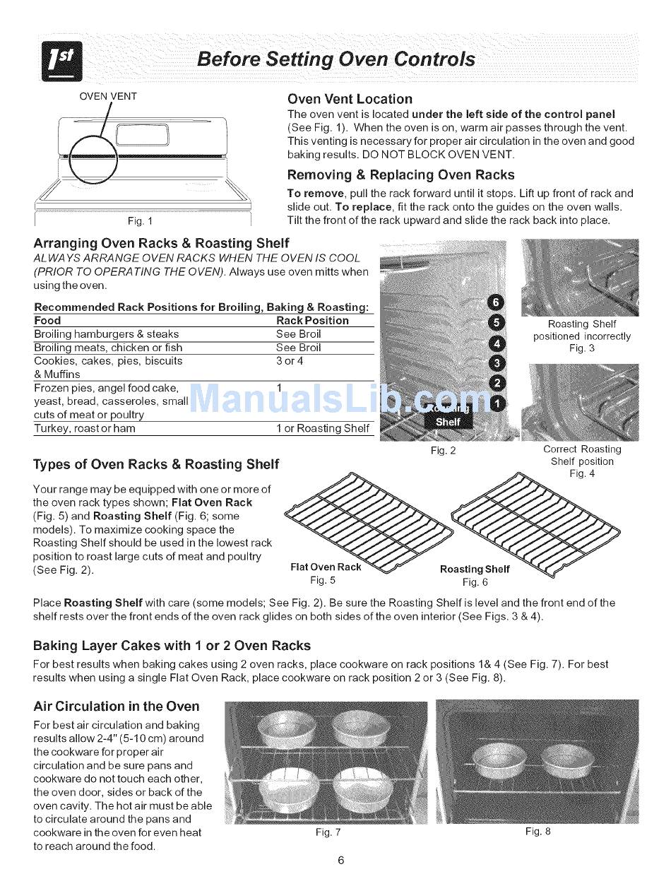 Shelf with care (some models; See Fig. 2). Be sure the Roasting Shelf is level and the front end of the