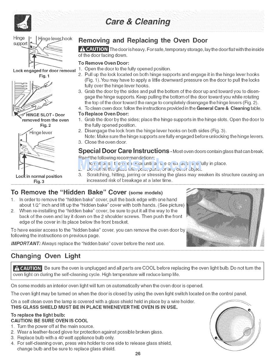 the top of the door toward the range to completely disengage the hinge levers (Fig, 2),