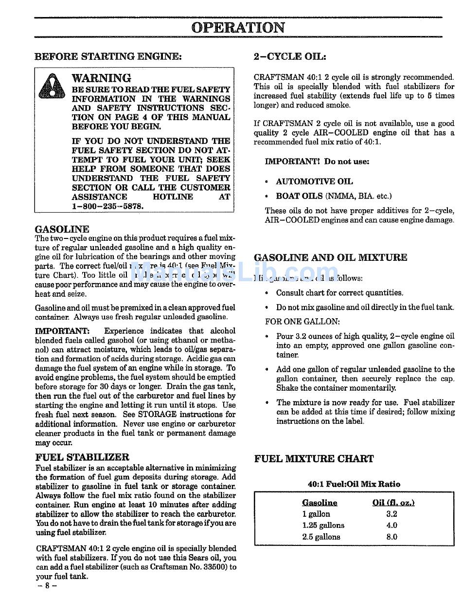 BE SURE TO READ THE FUEL SAFETY