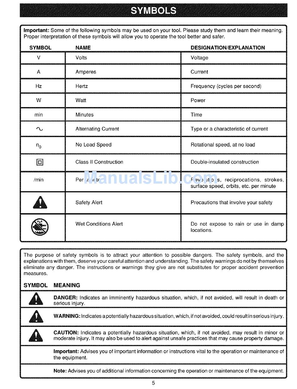Important:Someofthefollowing symbols maybeusedonyourtool.Please study themandlearntheirmeaning.