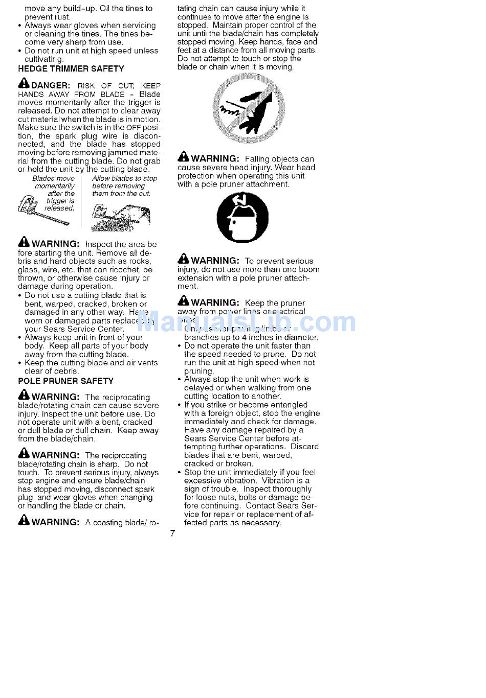 or handling the blade or chain.