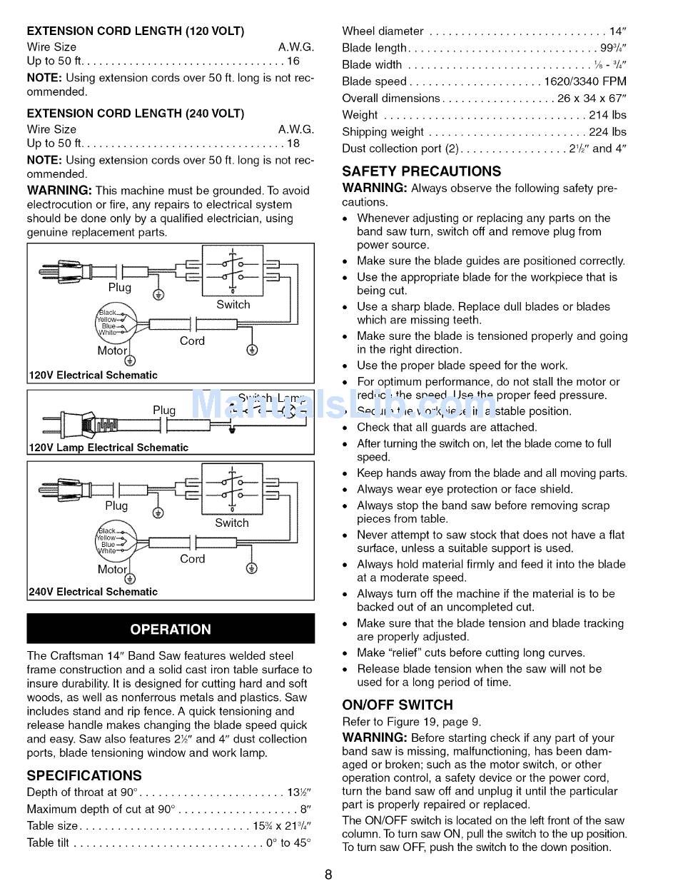 band saw turn, switch off and remove plug from