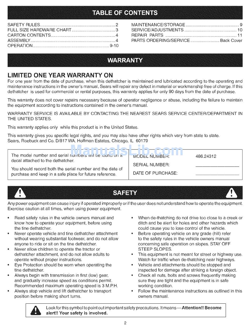 For one year from the date of purchase, when this dethatcher is maintained and lubricated according to the operating and