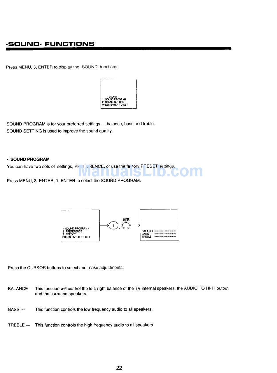 Press MENU, 3, ENTER, 1, ENTER to select the SOUND PROGRAM.