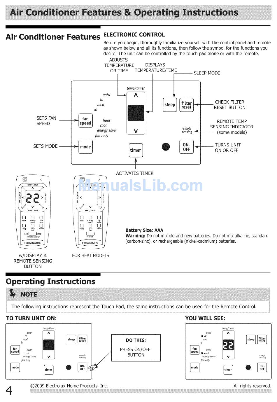 TO TURN UNIT ON: