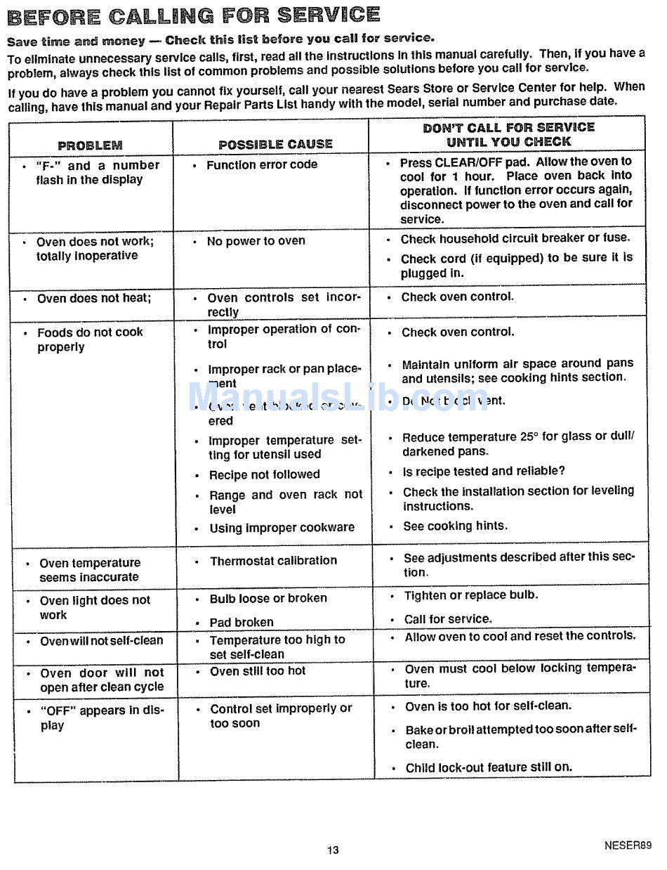 If you do have a problem you cannot ft× yourself, call your nearest Sears Store or Service Center for help. When