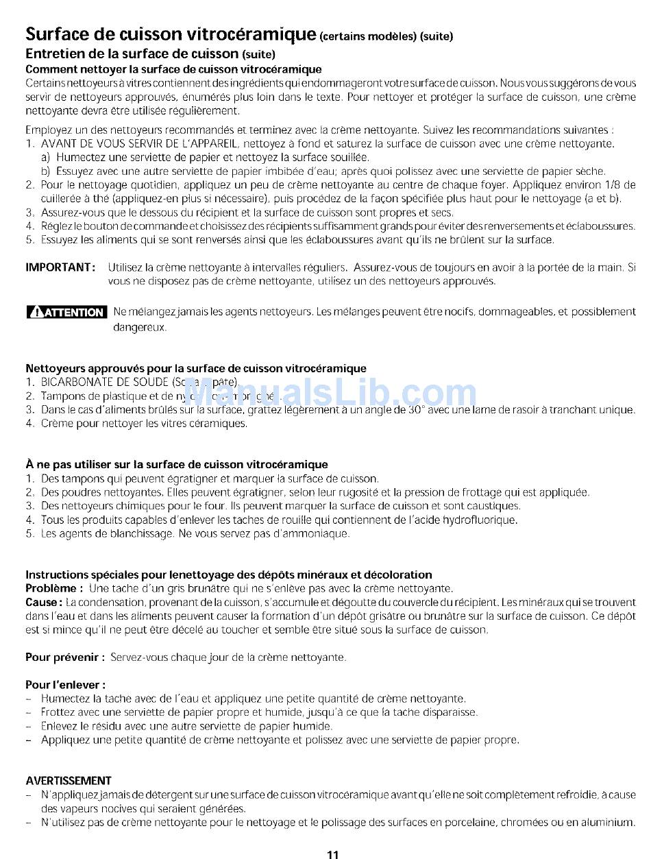 servir de nettoyeurs approuves, enumeres plus loin dans le texte. Pour nettoyer et proteger la surface de cuisson, une creme