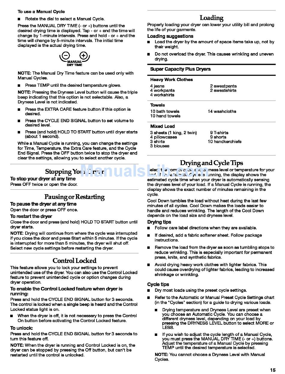 (in the "Cycles" section) for a guide to drying various loads.