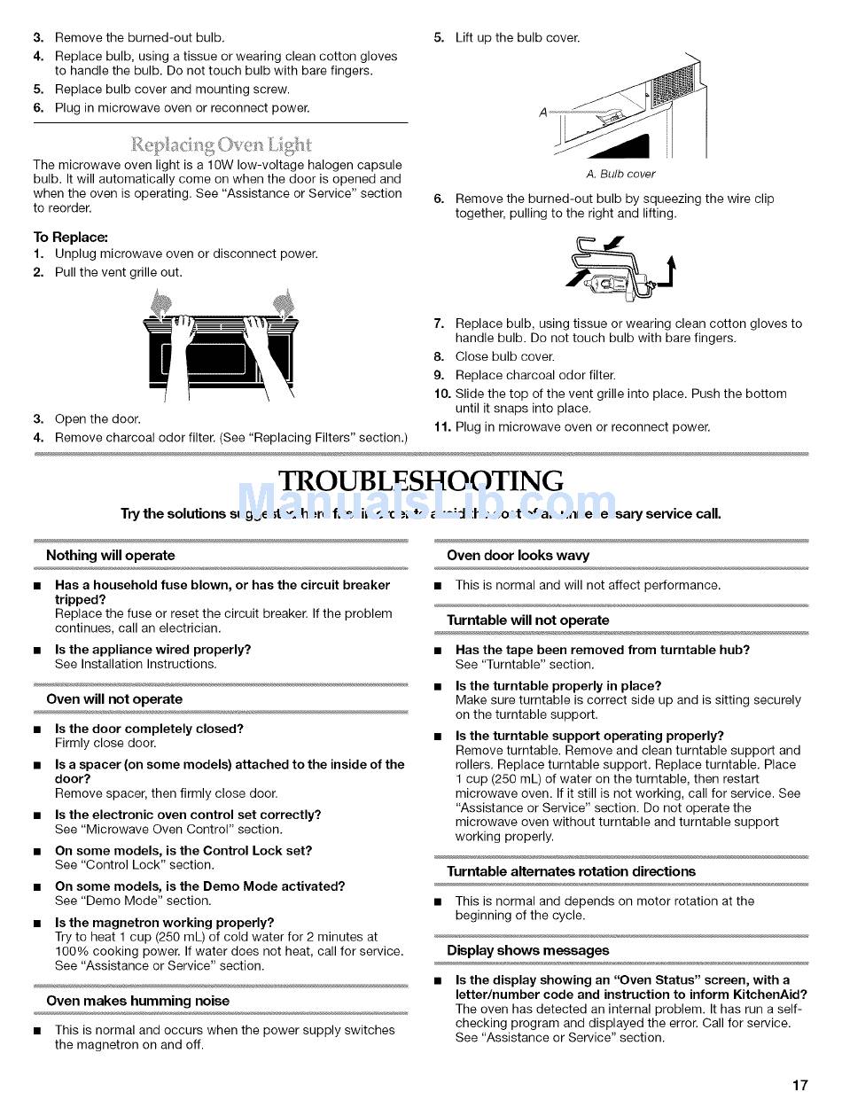 4. Remove charcoal odor filter. (See "Replacing Filters" section.)