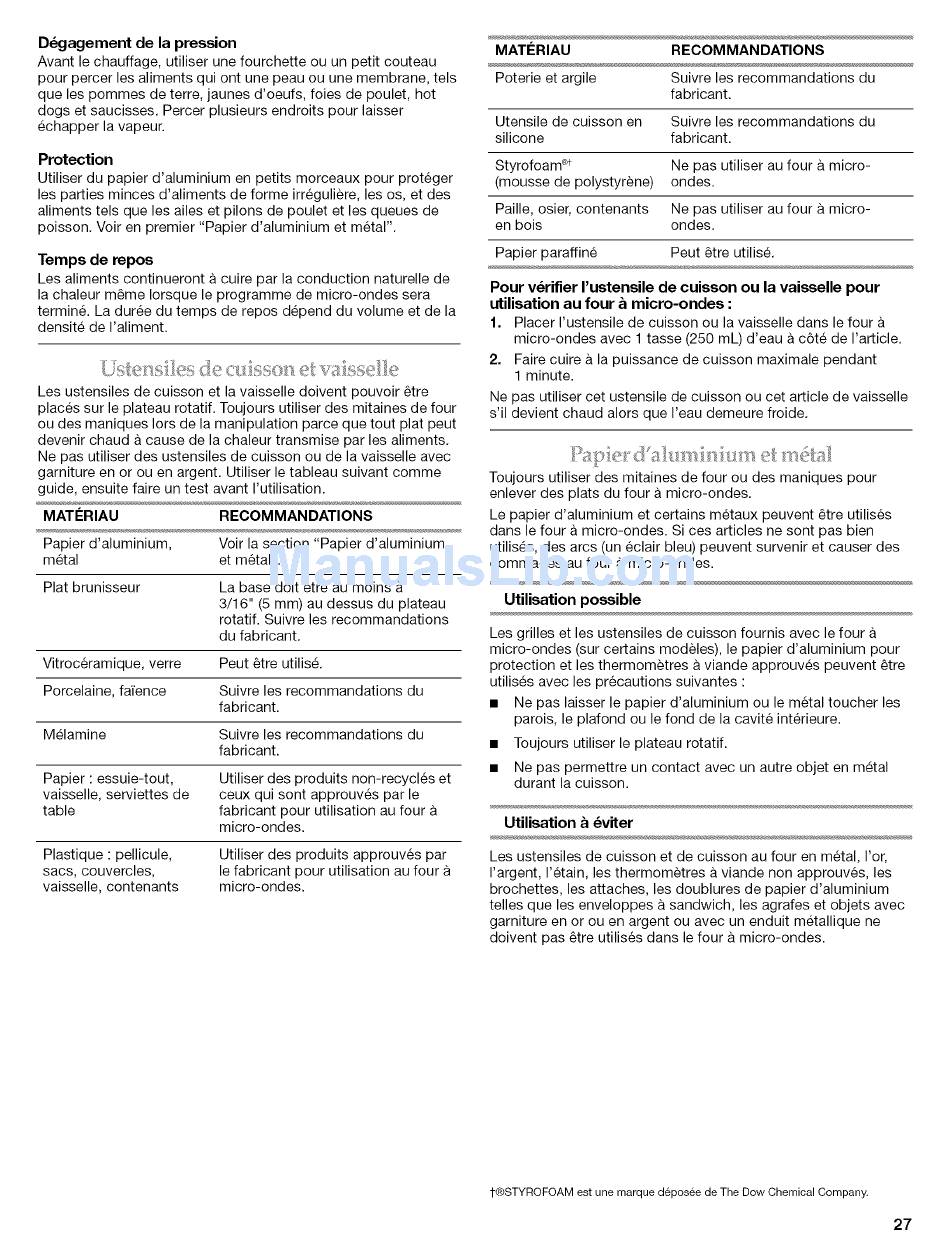 doivent pas _tre utilises dans le four a micro-ondes.