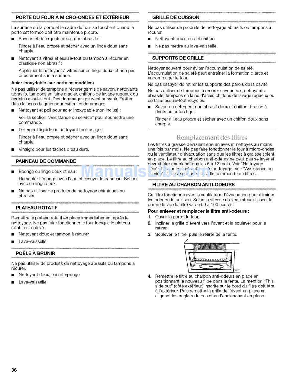 Les filtres a graisse devraient _tre enleves et nettoyes au moins