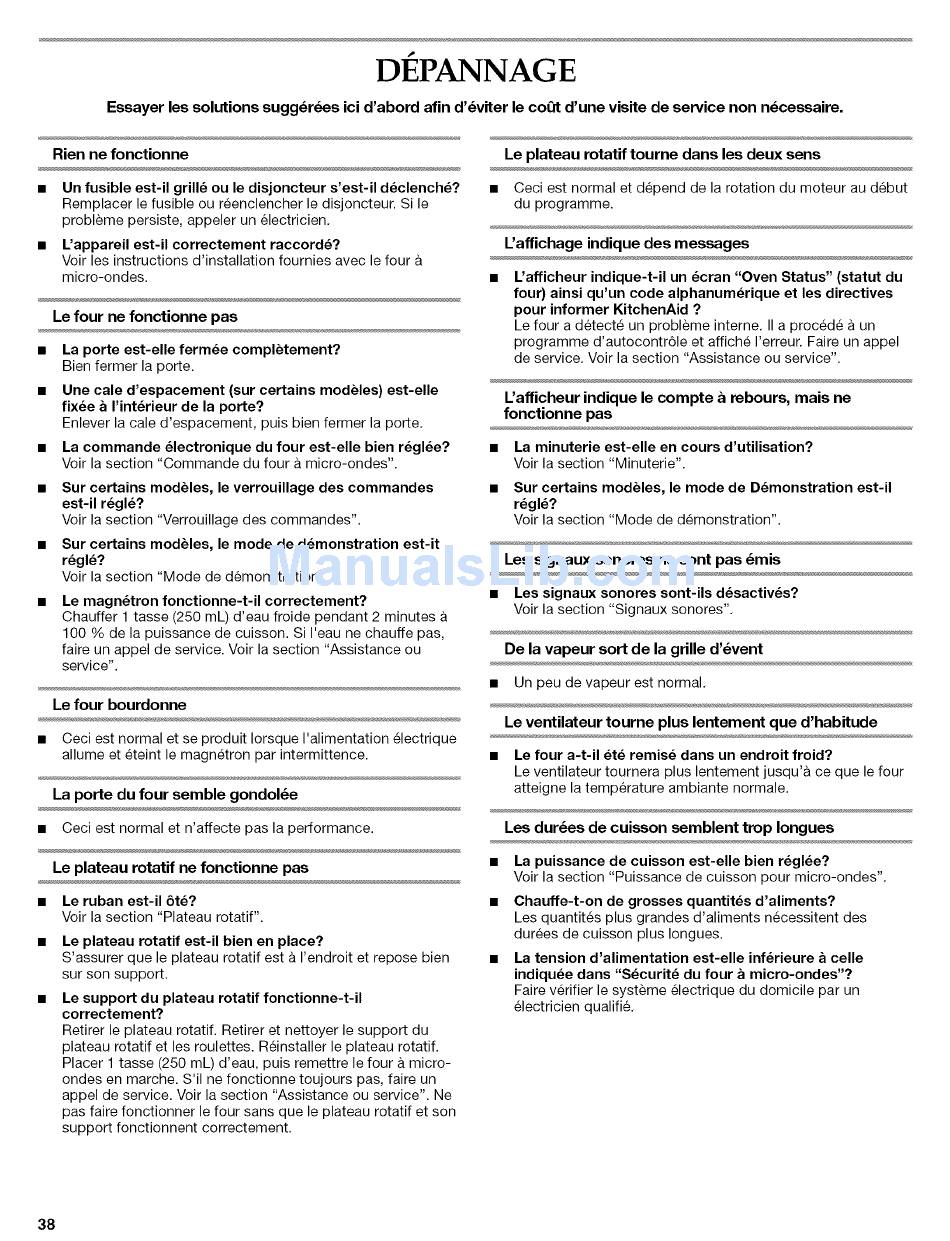 Essayer les solutions sugg6r_es ici d'abord afin d'6viter le coOt d'une visite de service non n6cessaire.
