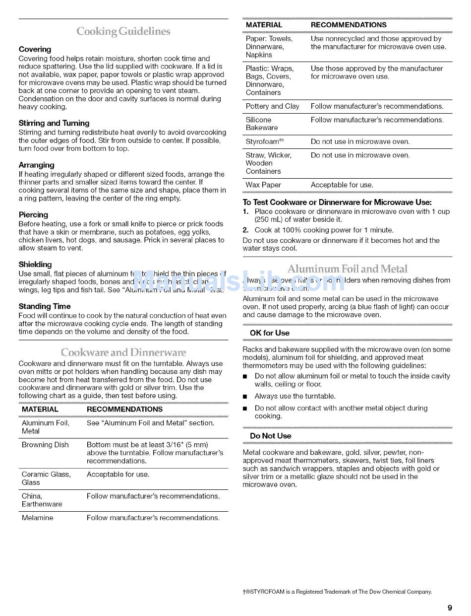 oven. If not used properly, arcing (a blue flash of light) can occur