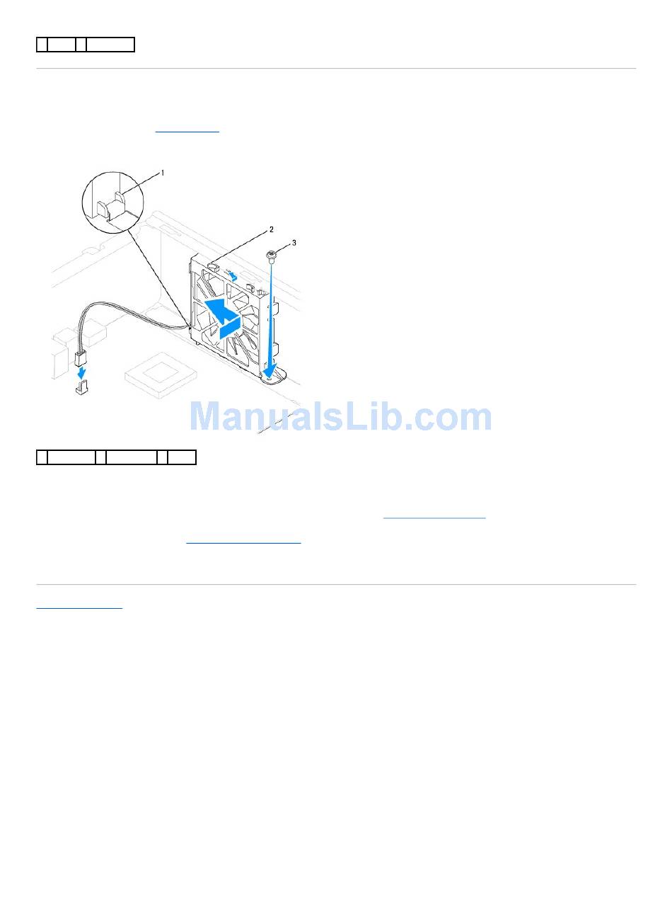 2. Align the top and bottom chassis fan tabs with the projections in the chassis, and slide the chassis fan towards the back of the computer.