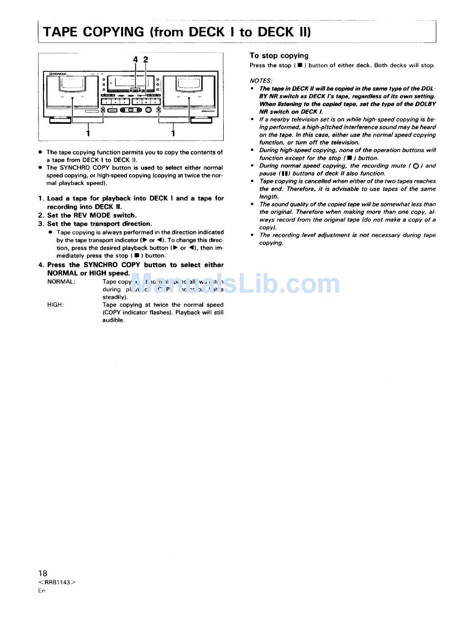 Tape copying is always performed in the direction indicated