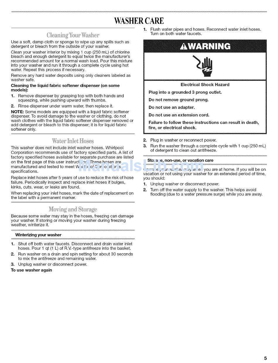 your washer. If storing or moving your washer during freezing
