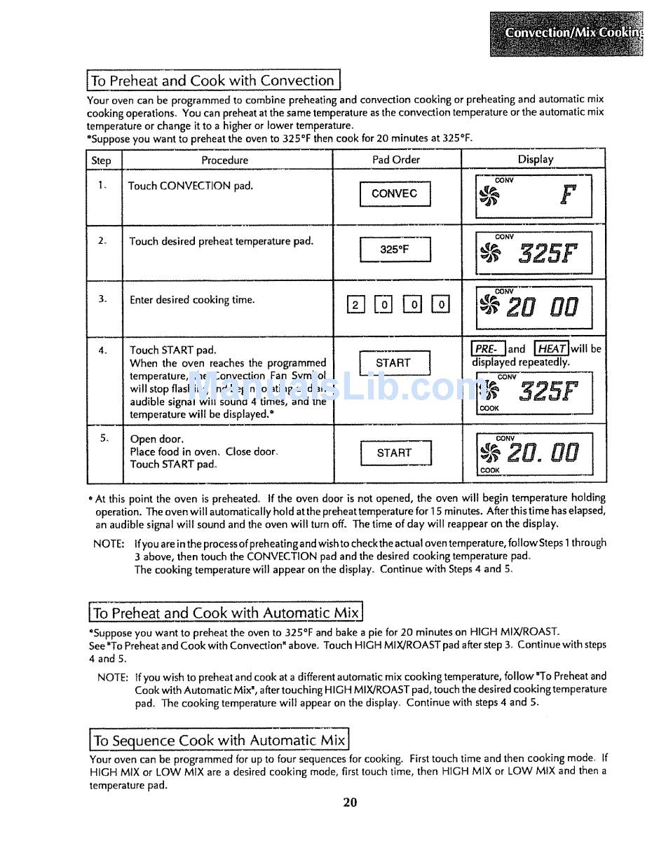 cooking operations. You can preheat at the same temperature as the convection temperature or the automatic mix