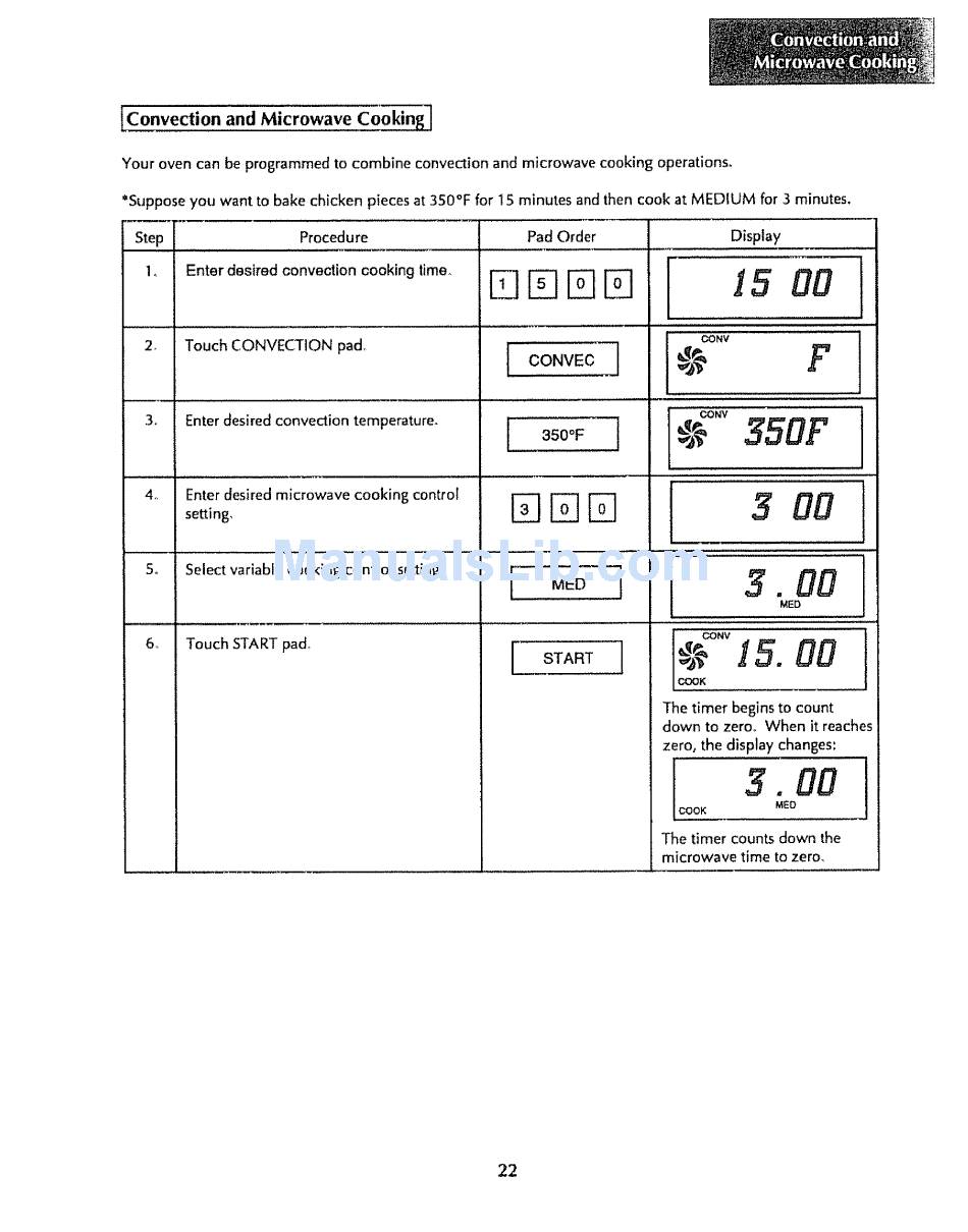 "Suppose you want to bake chicken pieces at 350°F for 15 minutes and then cook at MEDIUM for 3 minutes.