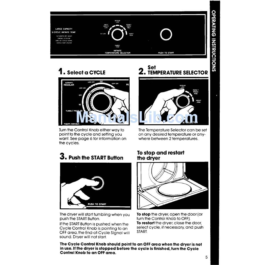 Control Knob should point to an OFF area when the dryer is not