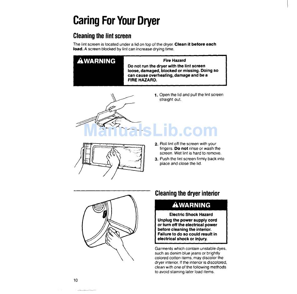 Caring ForYour Dryer