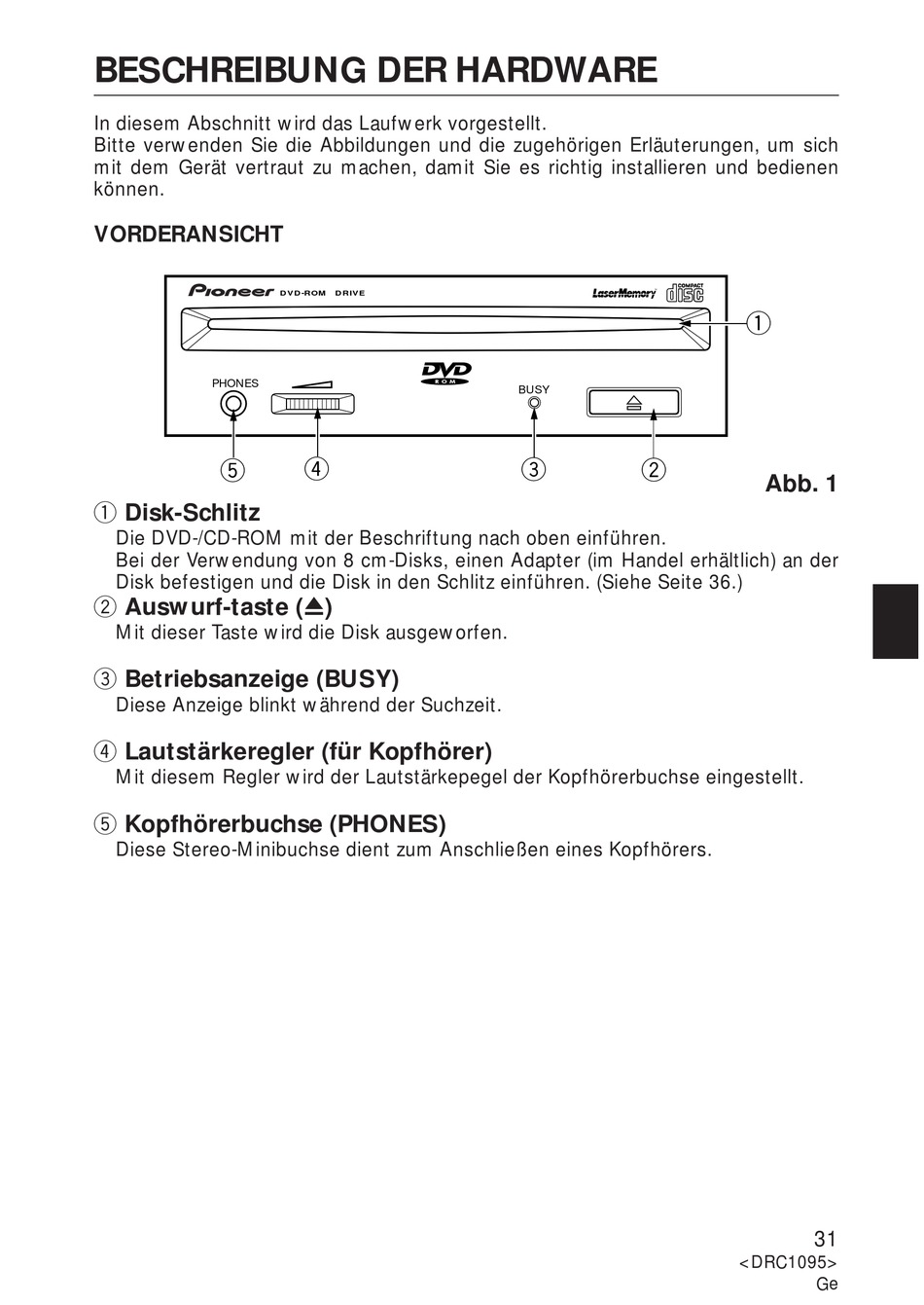 Mit dieser Taste wird die Disk ausgeworfen.
