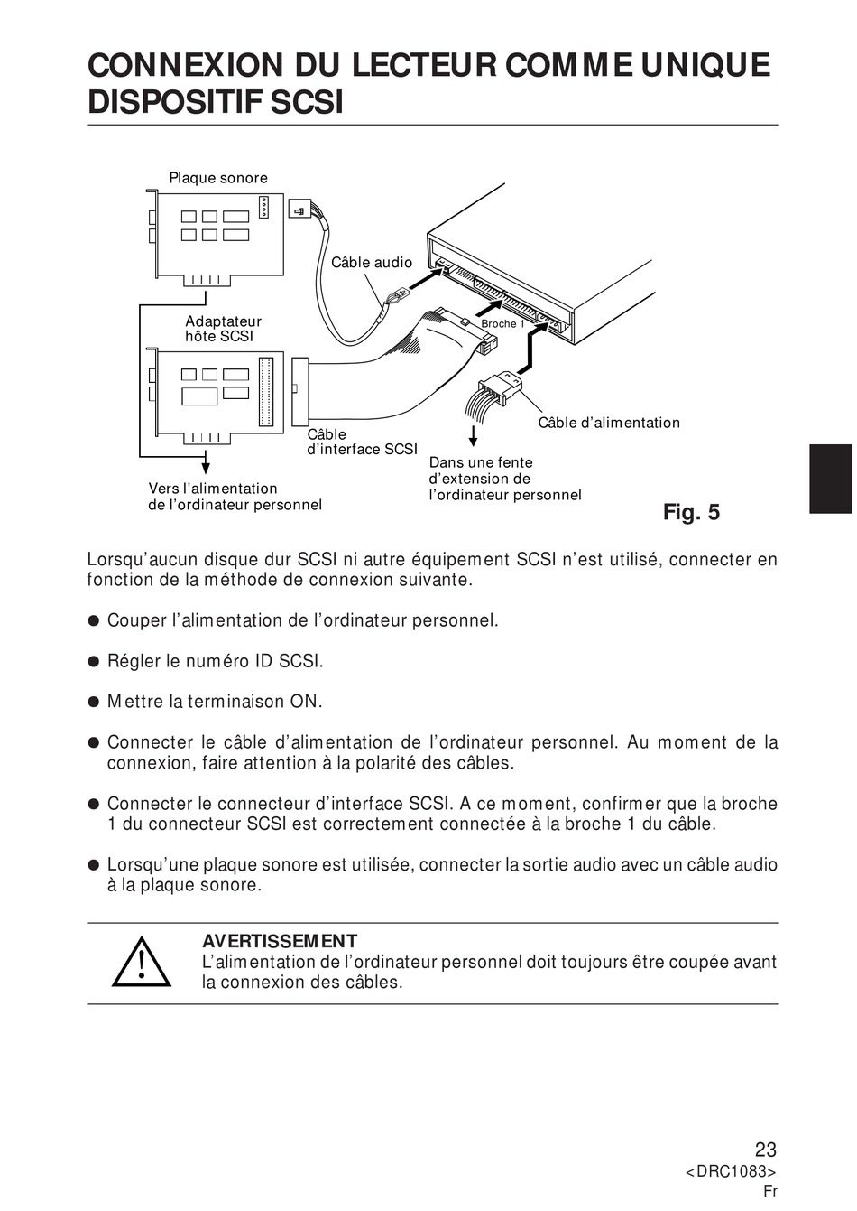 L'alimentation de l'ordinateur personnel doit toujours être coupée avant